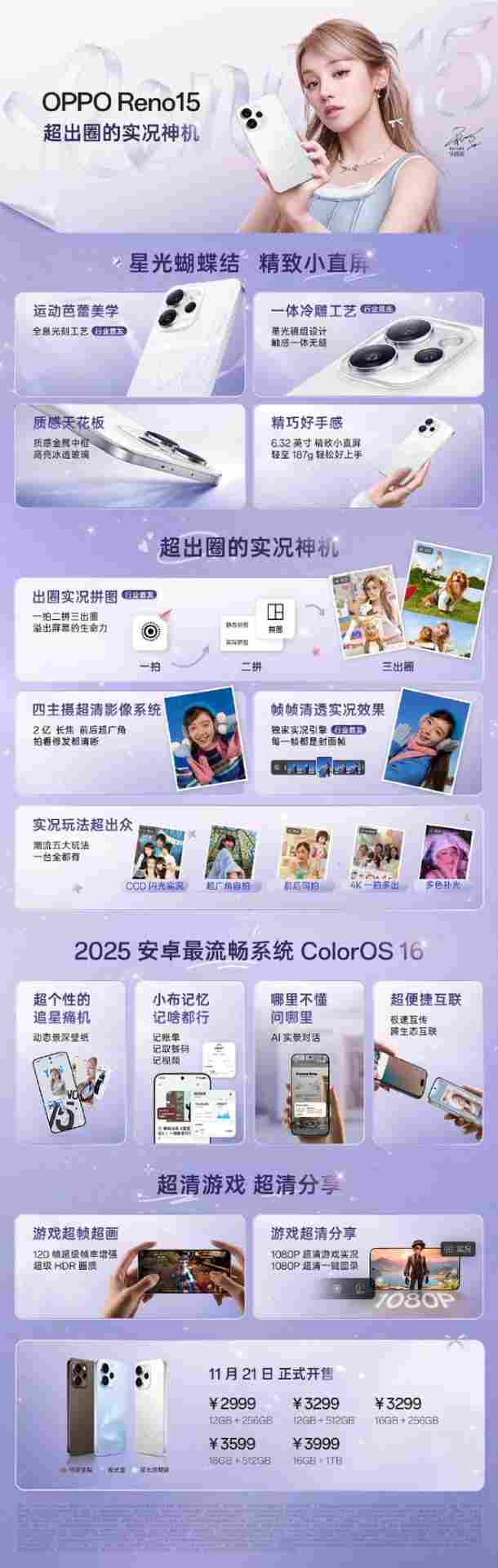 11 月 21 日消息,OPPO Reno15 系列手机今日开启首销,分为标准版和 Pro 版,售价 2999 元起,首销 2949 元起。